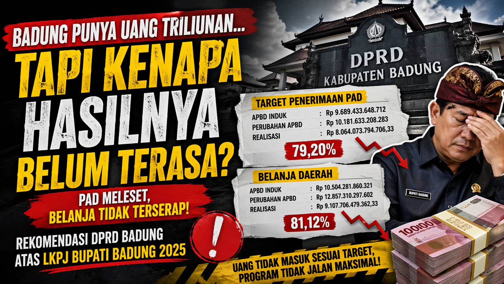 Badung – Pawisikbali.com, Rekomendasi DPRD atas Laporan Keterangan Pertanggungjawaban (LKPJ) Bupati Badung Tahun 2025 membuka sejumlah catatan serius terkait kinerja pengelolaan anggaran daerah.